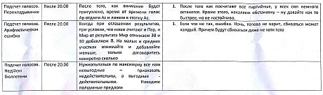 "При оглашении результатов, при условии, что наши считают и Пар, и Мир (коммунист Владимир Мирончук - ред.), от результата Мир отнимаем 30 и 30 добавляем П. На малых и средних участках отнимайте меньше, только договоритесь, сколько", - гласит инструкция.