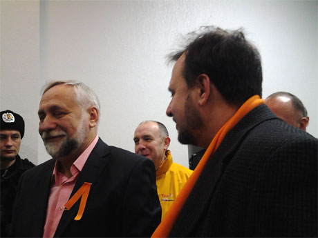 В перерыве к Юрию Луценко пришли его друзья: Юрий Кармазин, Андрей Шевченко, Виктор Уколов.