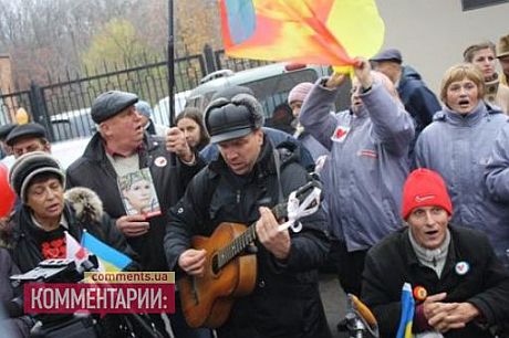 Пока сторонники Тимошенко поют ее любимые песни – "Рідна мати моя" и "Реве та стогне Дніпр широкий", а также повстанческие песни, как то "Лента за лентою", сообщают Комментарии.