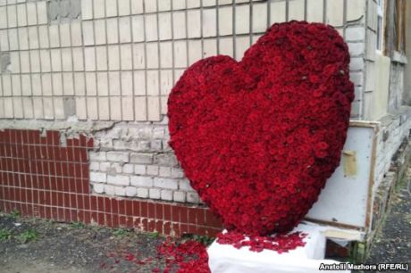 Как сообщает "Интерфакс-Украина", уже привезли букет из темно-красных роз в форме сердца размером с человеческий рост.