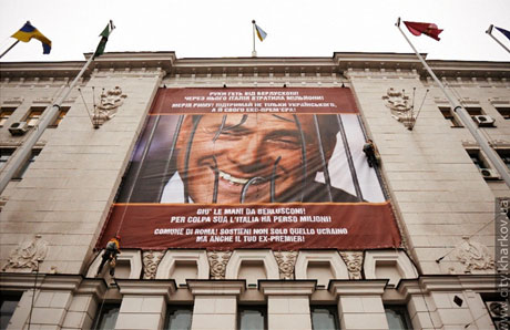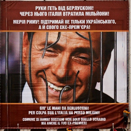 В обращении говорится: "Руки прочь от Берлускони! Из-за него Италия потеряла миллионы! Мэрия Рима! Поддержи не только украинского, но и своего экс-премьера!"