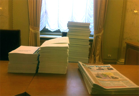 | Стопки с проектом Бюджета уже в Раде. Каждый документ - почти 400 страниц |