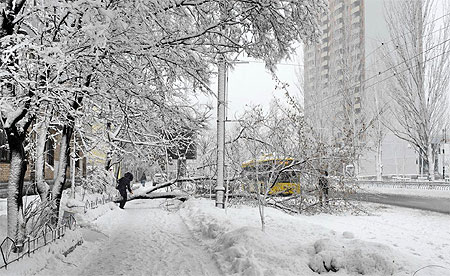 В связи со снегопадами в Киеве объявлена "чрезвычайная ситуация природного характера".