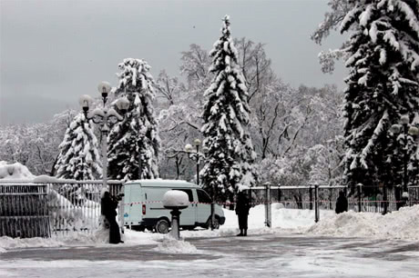 По ее словам, на месте забора - полосатая лента, машина и два милиционера.