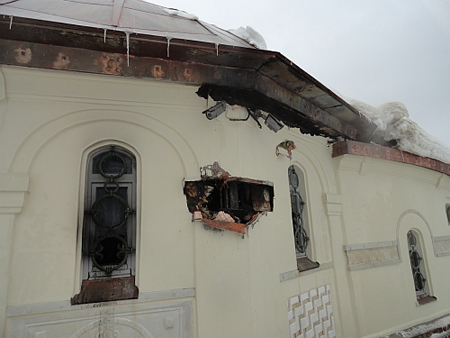 Как сообщил журналист Игорь Луценко в своем блоге на "Украинской правде", огонь повредил значительную часть помещения внутри, и даже привел к разрушению элементов снаружи "часовни".