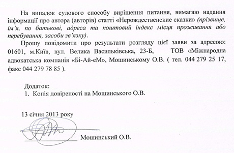 "На случай судебного способа решения вопроса" представитель Медведчука также требует от издания предоставить информацию об авторе статьи - фамилию, имя, отчество, адрес и почтовый индекс места жительства или пребывания, средства связи.