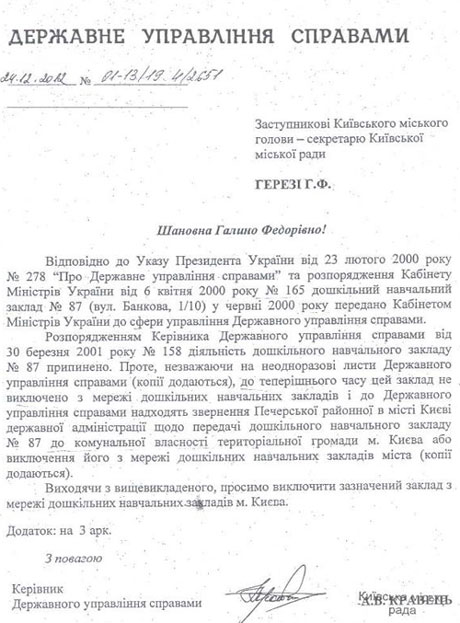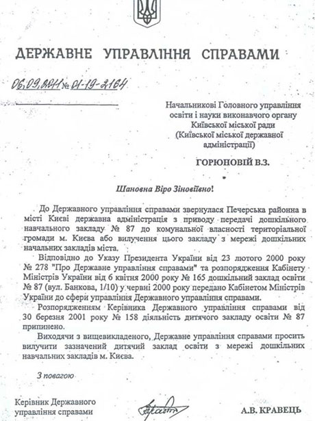 Государственное управление делами просит Киевсовет исключить дом детского сада №87, что на улице Банковой, 1/10, из перечня учебных учреждений.