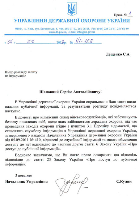 "Ведомости о количественном составе военнослужащих, которые обеспечивают безопасность должностных лиц, отнесены к служебной информации и имеют ограничение доступа к ней", - сказано в письме.
