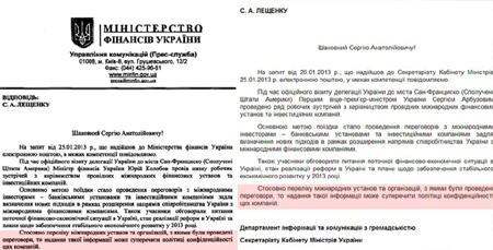 В ответах ведомства отказали в предоставлении информации о встречах Юрия Колобова и Сергея Арбузова в Америке в ходе официального визита, который стоил бюджету 200 тысяч гривен.