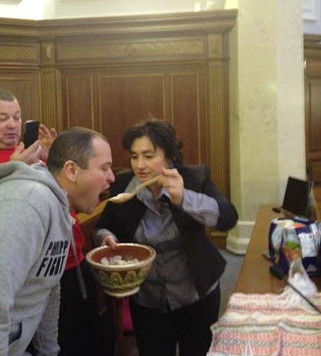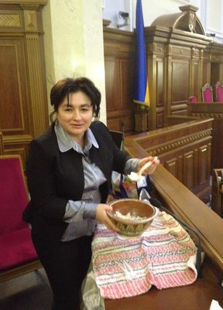 На своей странице в Facebook она выложила фото депутатов от "УДАРа" в сессионном зале в субботу и сообщила, что нардеп, писательница Мария Матиос принесла присутствующим вареники и пирожки.
