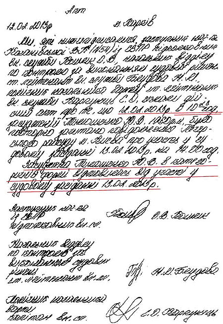| Акт об отказе Тимошенко. Фото пресс-службы ГПтС |