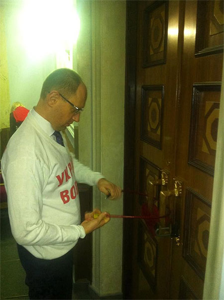 | Яценюк закрывает двери сессионного зала. Фото Татьяны Золотаревой |