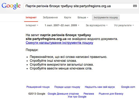 Зато в интернет-архиве содержатся когда-то удаленные новости. В частности заявление Юрия Мирошниченко, который четко говорит, что Партия регионов блокирует трибуну.
