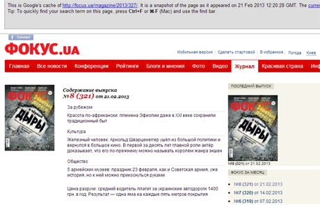 Последний номер журнала Фокус от 21.02.2013 №8 был снят с продажи со всех точек распространения по всей Украине.