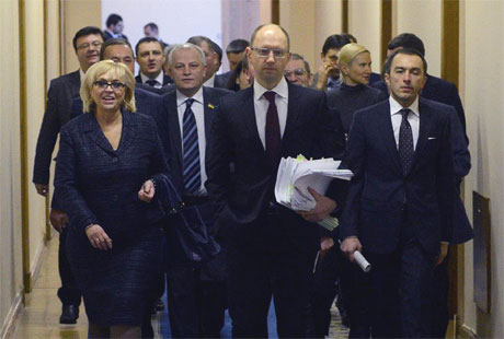 "Мы пришли выдвинуть свои политические требования об отставке правительства и президента, который его назначил", - сказал Яценюк журналистам.