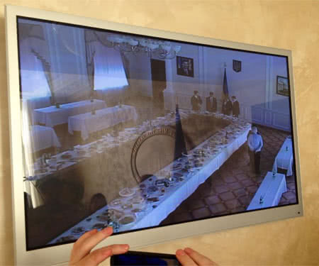 По информации источников "Украинской правды", изображение банкетного зала попало на мониторы пресс-центра случайно.