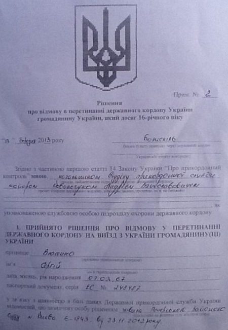 "13 марта пограничная служба очередной раз отказала мне в выезде за границу", - рассказал Власенко.