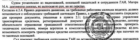 Издание отмечает, что в своем постановлении, судья Иванчук В.Н. использовал старую редакцию Правил дорожного движения и указал, что согласно п.2.4 ПДД на требование работника милиции водитель должен остановиться с соблюдением требований настоящих Правил, предоставить (передать) для проверки документа, указанные в пункте 2.1.