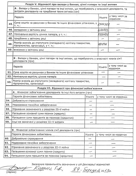 Он также владеет ценными бумагами номинальной стоимостью 5 миллионов 238 тысяч 735 гривен (все они вложены до 2012 года, согласно декларации).