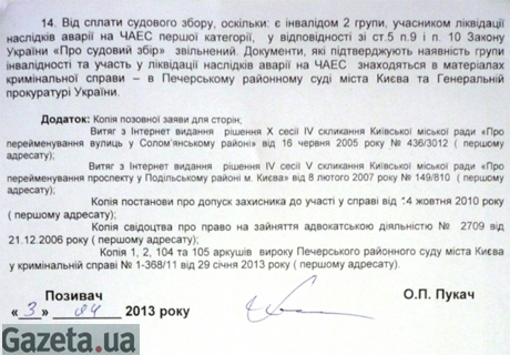 "В заявлении Пукач просит отменить и признать недействительным поручения бывшего президента Виктора Ющенко о переименовании улицы Машиностроительная в Соломенском районе Киева на Георгия Гонгадзе. Кроме того, признать недействительным переименованиt проспекта Советской Армии в Подольском районе на Гонгадзе", - сообщил адвокат.