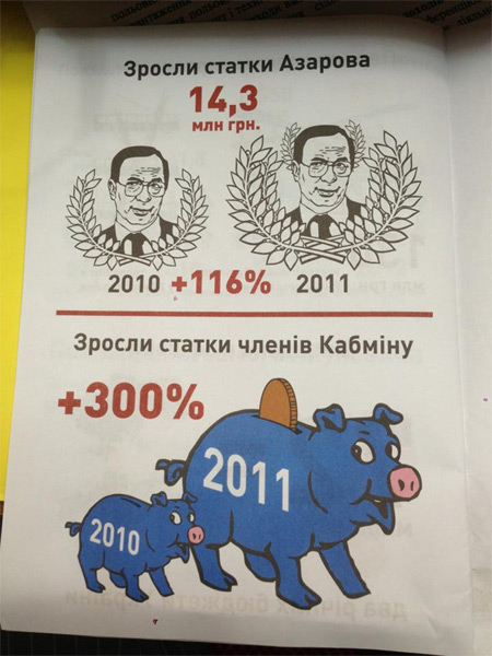На рисунке также изображена эмблема с перечеркнутым Виктором Януковичем в короне.