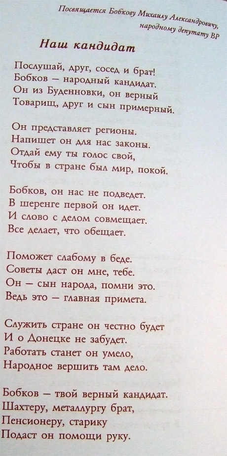 В Донецке представили поэтический сборник со стихами, прославляющих депутатов от Партии регионов и жену президента Людмилу Янукович.