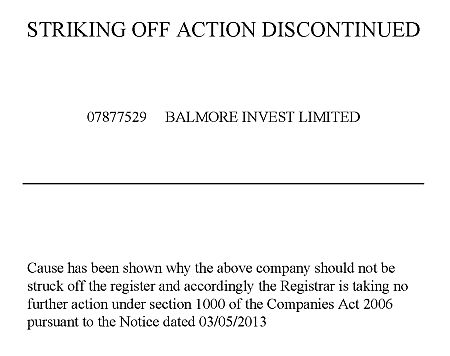 То же время, как свидетельствует реестр британских компаний, соответствующий отчет, датированный 9 декабря 2012, был обнародован 3 мая. А 4 мая было опубликовано сообщение об отмене процедуры ликвидации.