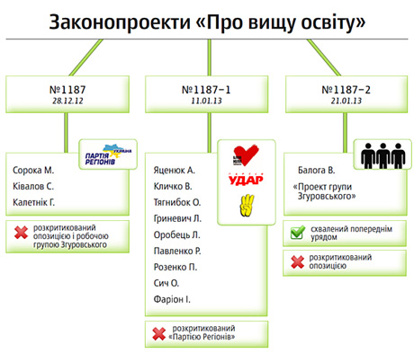 Как известно, в Верховной Раде зарегистрированы три законопроекта о высшем образовании - от Партии регионов, оппозиции и рабочей группы академика Михаила Згуровского, который в парламенте зарегистрировал Виктор Балога.