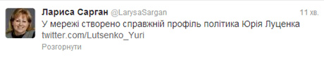 "В сети создан настоящий профиль политика Юрия Луценко ...", - написала она.