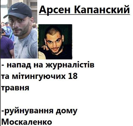 Так одним из наиболее активных бойцов, который больше всего попал в кадр, является Арсен Капанский. Он также принимал участие в рейдерском захвате дома на печерских холмах, который принадлежить учительнице Нине Москаленко.