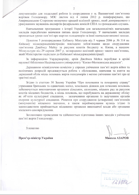"В учебных заведениях проводятся уроки памяти о жертвах голодоморов", - подчеркивается в ответе.