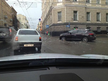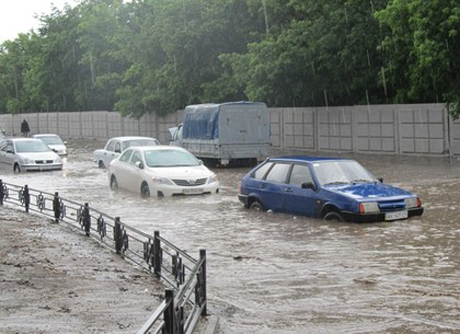 Так, в начале улицы Клочковской, которая находится в низине и куда потоком сходит вода, автомобили и даже автобусы буквально плавали.