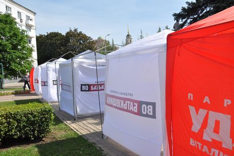 | "Батькивщина" и УДАР поставили палатки под театром в Донецке |