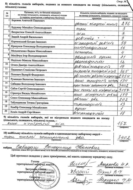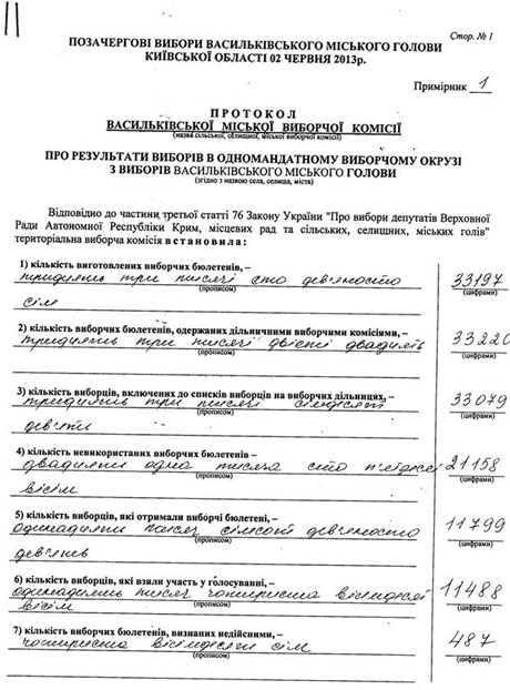 | Итоговый протокол по выборам мэра Василькова |