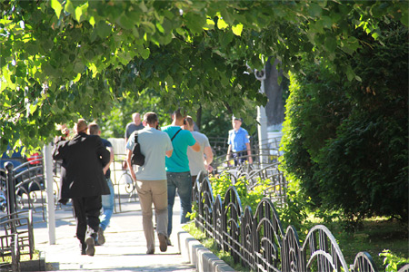 По словам другого депутата Людмилы Денисовой, этих людей было около 15 и они стояли рядом с сотрудниками УГО.