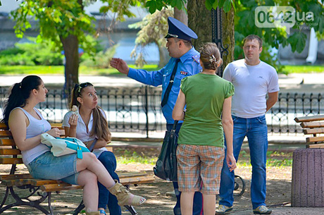 В Луганске 20 июня милиция попросила отдыхающих на лавочках в сквере напротив Луганской облгосадминистрации, где состоялось заседание Совета регионов под председательством Президента Виктора Януковича, покинуть зону отдыха, пишет "0642".