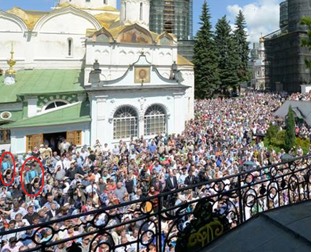 Фотография опубликована в посвященной проповеди фотогалерее. На снимке вся площадь перед балконом, на котором стоит патриарх, заполнена людьми. При этом в левом нижнем углу фотографии в толпе несколько раз повторяются одни и те же лица.