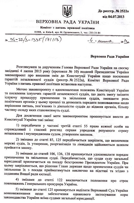 Согласно решению, которое есть в распоряжении "Украинской правды", комитет решил рекомендовать Верховной Раде принять внесенный законопроект, который значительно усиливает роль президента и Высшего совета юстиции в назначении и увольнении судей.