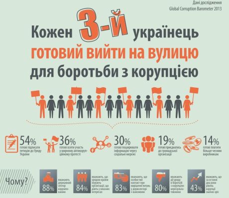 Каждый третий украинец готов выйти на улицу для борьбы с коррупцией.