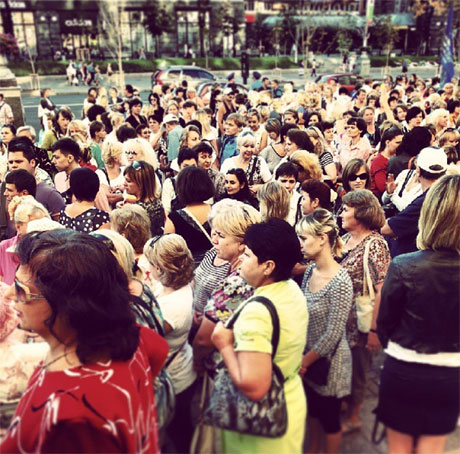| Бюджетники собираются подж метро Крещатик. Фото Татьяны Николаенко, УП |