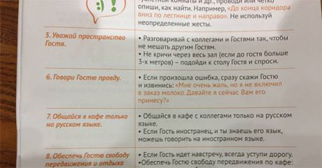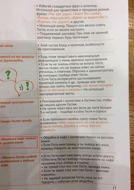 После этого сотрудник сети показал брошюру, в которой указано, что согласно стандартам "Кофе Хауз" они обязаны разговаривать по-русски.