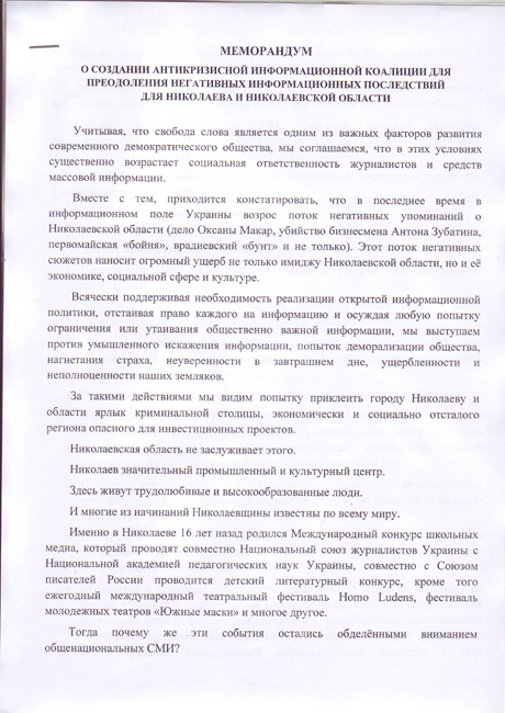 На Николаевщине журналисты решили бороться с "чернухой против региона"