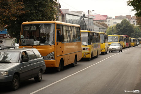 Так, "тянучка" начинается от Центрального универмага "Луцк", авто стоят на улице Винниченко вплоть до проспекта Победы. Это приблизительно полкилометра.
