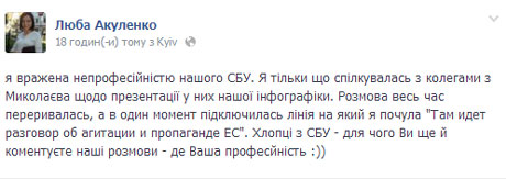 "Ребята из СБУ, для чего Вы еще и комментируете наши разговоры - где Ваша профессиональность?" – добавила она.