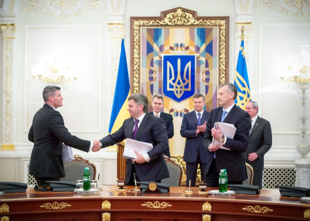 В присутствии президента Виктора Януковича состоялось подписание соглашения о распределении углеводородов с компанией "Шеврон" , которые будут добываться в пределах Олесского участка.