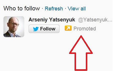 Лидер "Батькивщины" Арсений Яценюк продвигает свой аккаунт на Twitter за деньги.