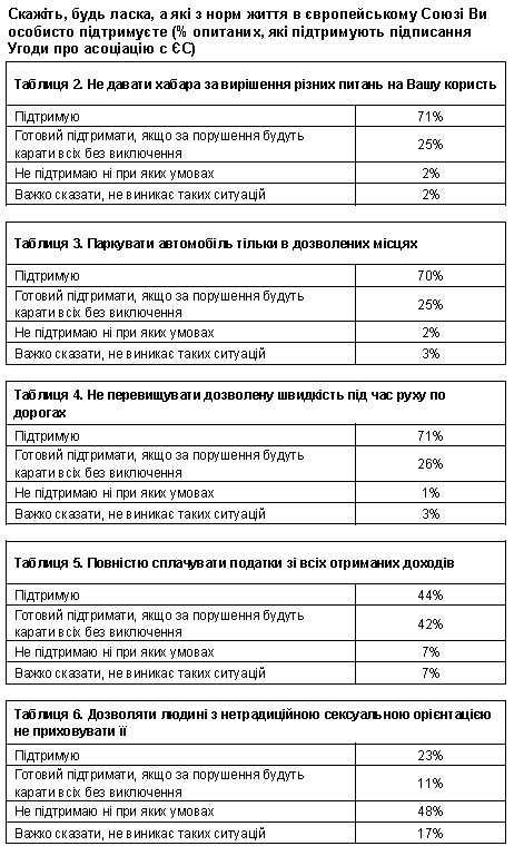 Респонденты, которые поддерживают подписание Соглашения об ассоциации с ЕС (45% опрошенных) в целом разделяют ценности ЕС, направленные на упорядочение общественной жизни.