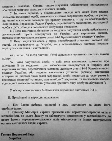 Представители оппозиции в рабочей группе доработали законопроект о лечении Юлии Тимошенко.