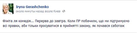 Об этом на своей Facebook-странице сообщила депутат от "Удара" Ирина Геращенко.