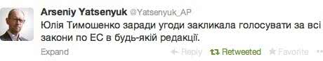 "Власенко на фракции зачитал письмо Юли к оппозиции. Юля призвала проголосовать за президентский закон о прокуратуре и региональский избирательный закон", - написал он.